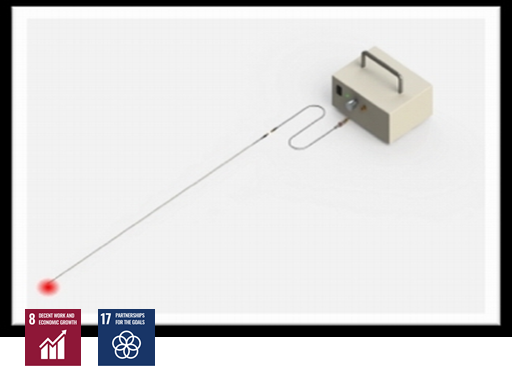 由朱唯勤教授團隊研發之「交鎖式髓內釘遠端螺孔定位裝置」,乃利用低散射率的長波長光源,將被包覆在骨腔內的髓內釘螺絲孔位置直接投射在骨頭表面,使執行髓內釘手術之醫師能以肉眼辨識髓內釘固定螺絲的位置,以進行定位與鎖定。由於無需X光輔助,可有效避免吸收過量的輻射劑量,對病患及手術醫師/護理人員都有很大的助益。