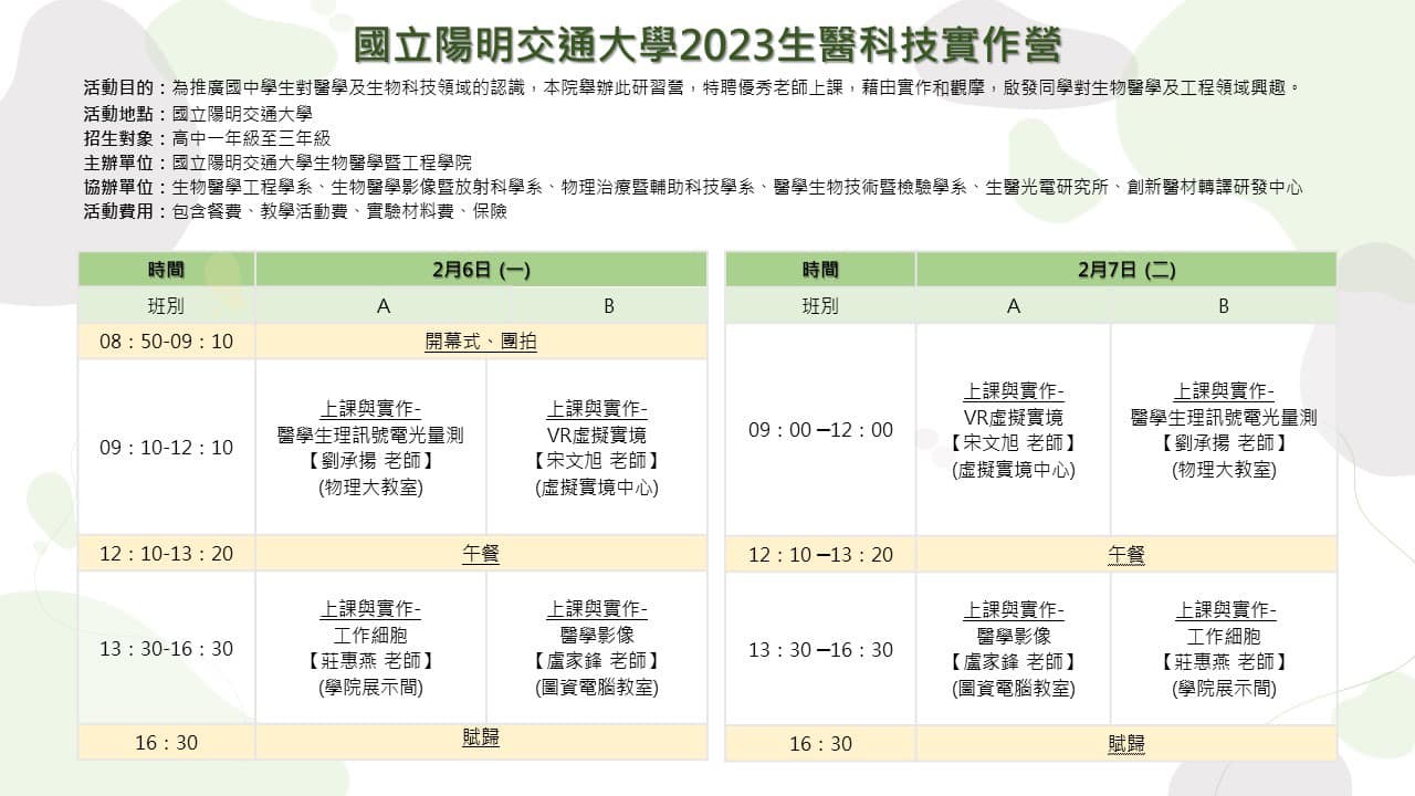~~感謝您對【2023生醫科技挑戰營-高中班寒假營隊】報名與支持,歡迎踴躍參與~把握最後10席~