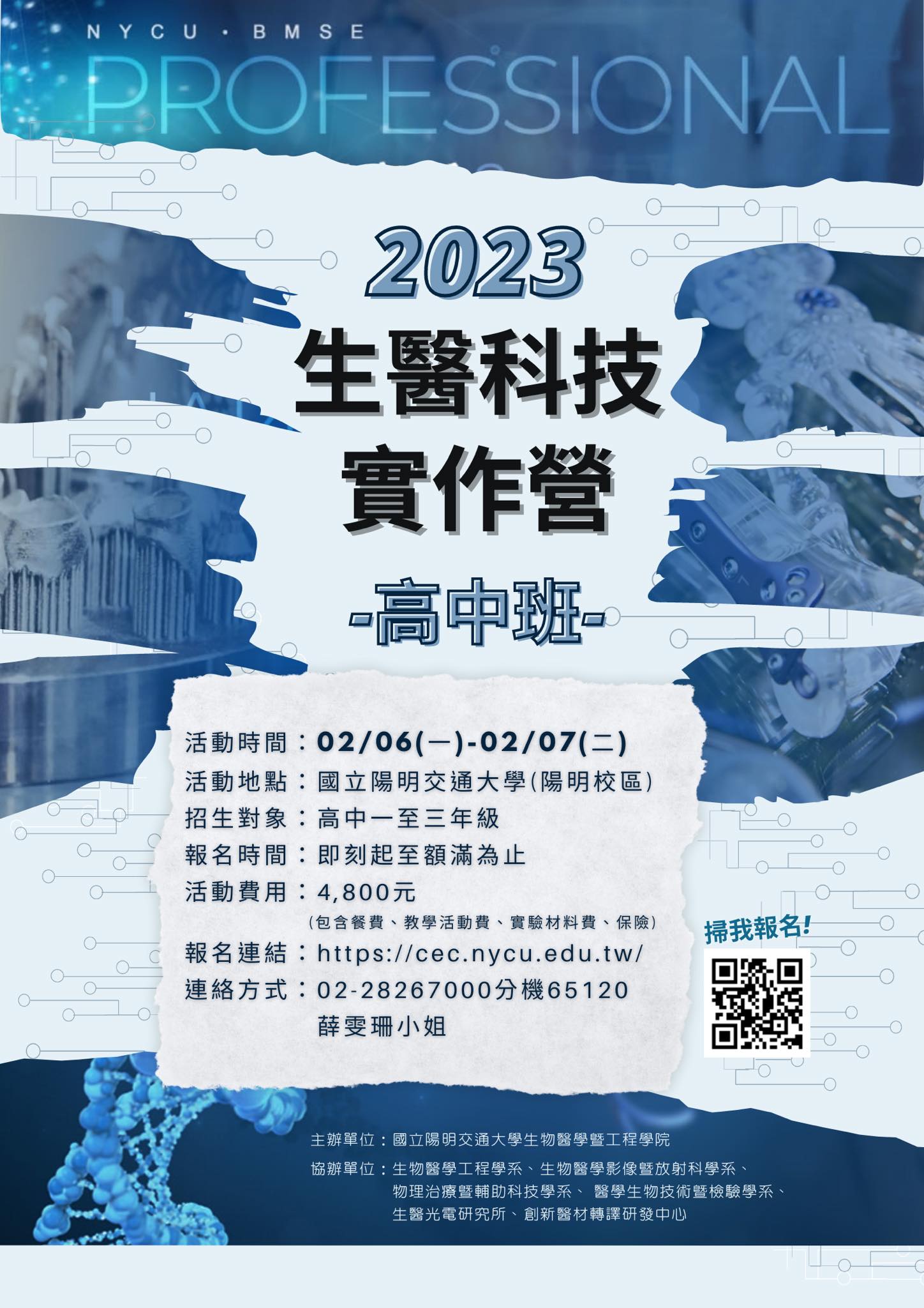 #專業師資陣容堅強 #NYCU #高中生營隊 #精實課程 #智慧生醫工程 #精準醫學 #數位醫學影像