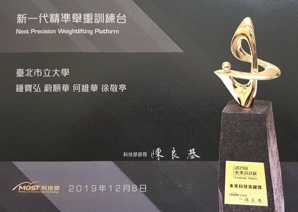 (11) 物輔系蔚順華教授與臺北市立大學共同開發「新一代精準舉重訓練台」榮獲「2019未來科技突破獎」(9、17)